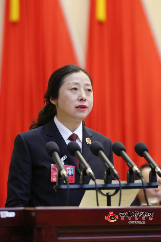 州人民检察院代理检察长肖洁作楚雄彝族自治州人民检察院工作报告。(记者 王洪 摄)