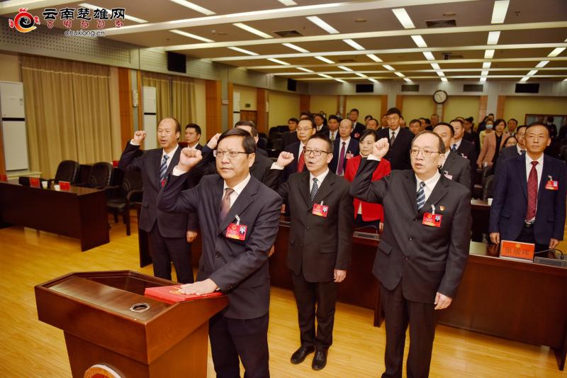 “我宣誓:忠于中华人民共和国宪法,维护宪法权威,履行法定职责,忠于祖国、忠于人民,恪尽职守、廉洁奉公,接受人民监督,为建设富强民主文明和谐美丽的社会主义现代化强国努力奋斗!”宣誓现场,本次大会当选的楚雄彝族自治州第十二届人民代表大会常务委员会副主任、楚雄彝族自治州第十二届人民代表大会常务委员会委员和通过的楚雄彝族自治州第十二届人民代表大会财政经济委员会主任委员集体宣誓。