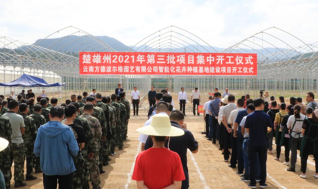 在禄丰市,张文旺宣布云南方德波尔格园艺有限公司智能花卉种植基地建设项目开工。该项目计划总投资3.1亿元,将在勤丰镇建设占地面积772亩的智能花卉种植基地。