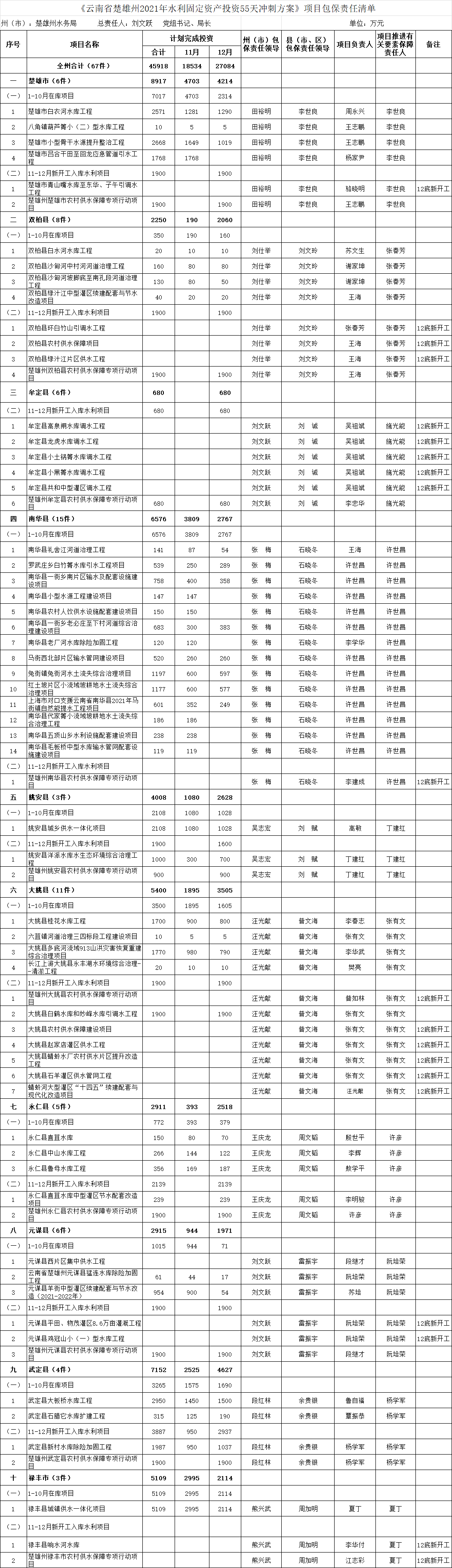 围绕2021年水利固定资产投资增长率35%以上的目标,在1—3季度完成水利固定资产投资的基础上,楚雄州编制了《楚雄州2021年水利固定资产投资55天冲刺方案》,11-12月加快推进在库水利项目36件、计划新开工重点水利项目31件,计划55天冲刺完成水利固定资产投资4.59亿元,以实现增幅35%以上的目标任务。开工仪式结束后,楚雄州在姚安县召开全州水利固定资产投资55天冲刺推进工作会议。