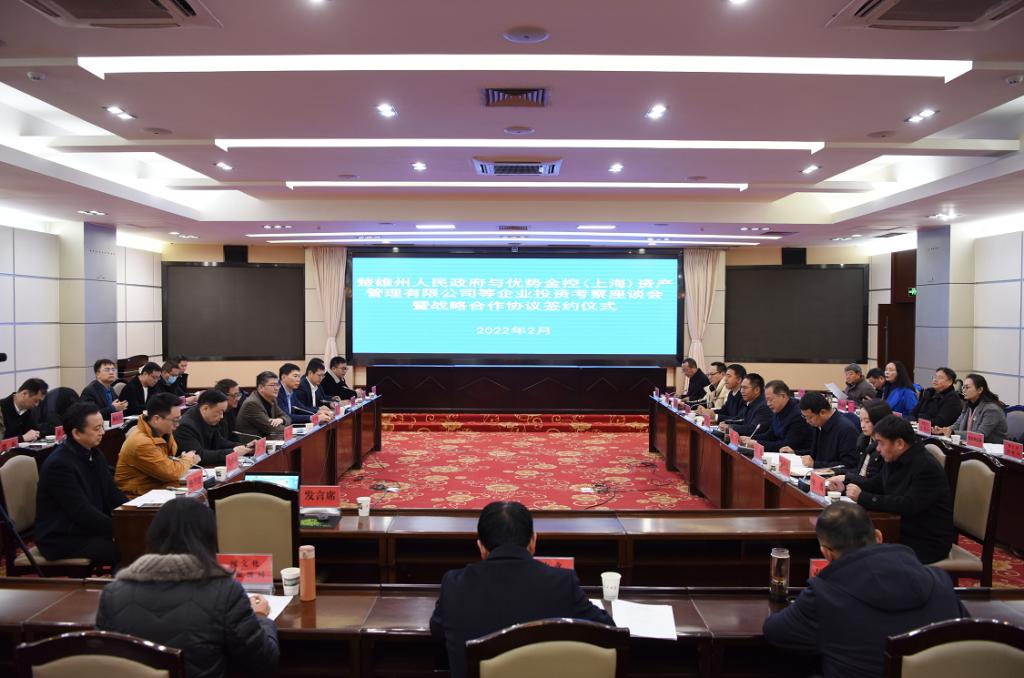 2月21日至24日,优势金控(上海)资产管理有限公司董事长吴克忠及相关企业负责人一行,到楚雄州开展投资考察活动,并于22日上午举行投资座谈会暨合作协议签约仪式。