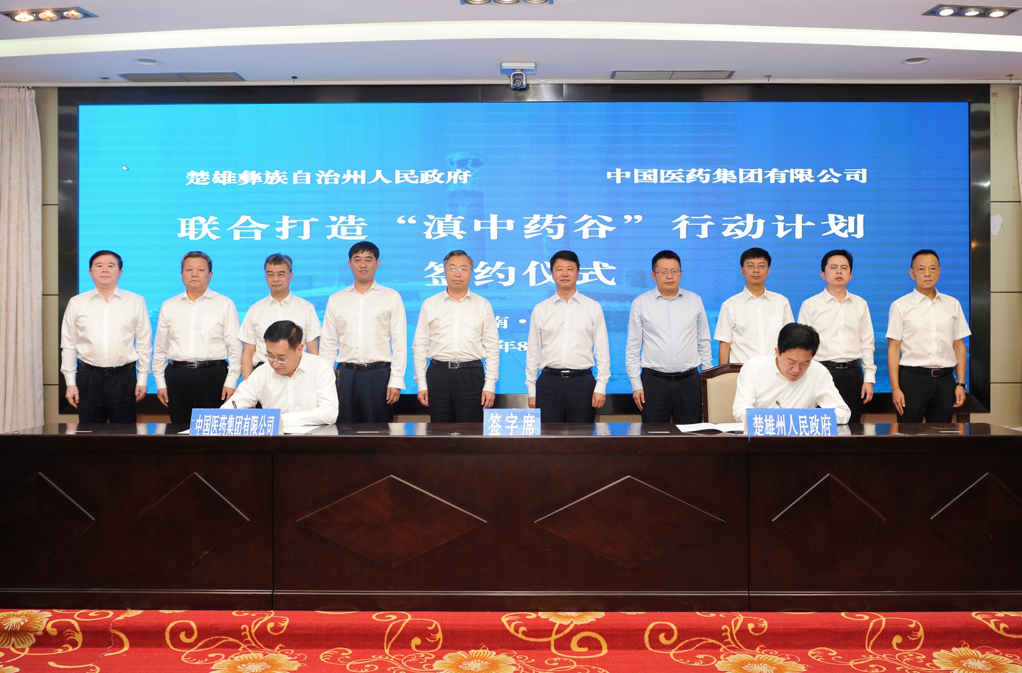副州长王秀江、中国医药集团副总经理董增贺代表双方签订联合打造“滇中药谷”行动计划。