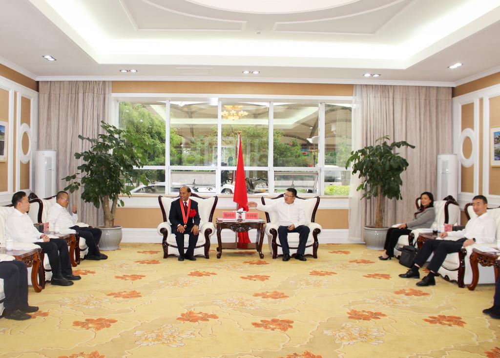 9月1日上午,受州委书记刘勇和州委副书记、州长张文旺的委托,州委副书记、州委政法委书记崔同富会见载誉而归的杨绍兴。崔同富代表州委、州政府对杨绍兴表示热烈的祝贺,勉励他珍惜荣誉,戒骄戒躁,为党和人民再创佳绩、再立新功,号召全州公务员向杨绍兴同志学习,以人民群众满意的新担当新作为,担负起新时代的职责使命。