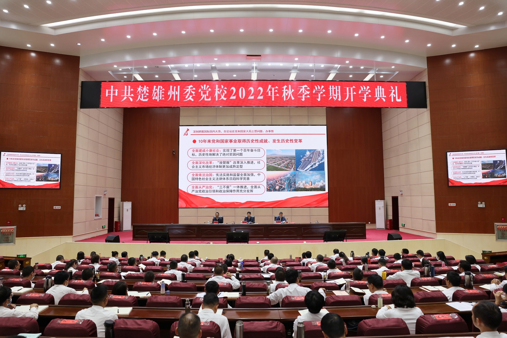 楚雄州2022年学习贯彻习近平新时代中国特色社会主义思想专题进修班、第25期中青年干部培训班开班式现场。