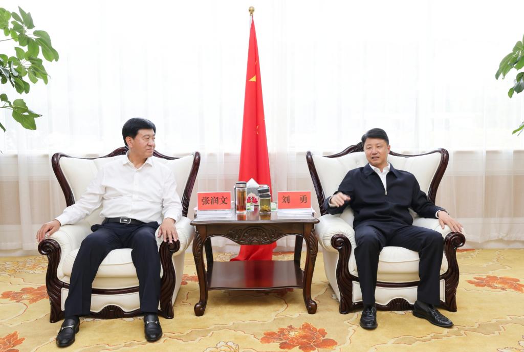 州委书记刘勇与中铁开发投资集团有限公司党委书记、董事长张润文会谈。
