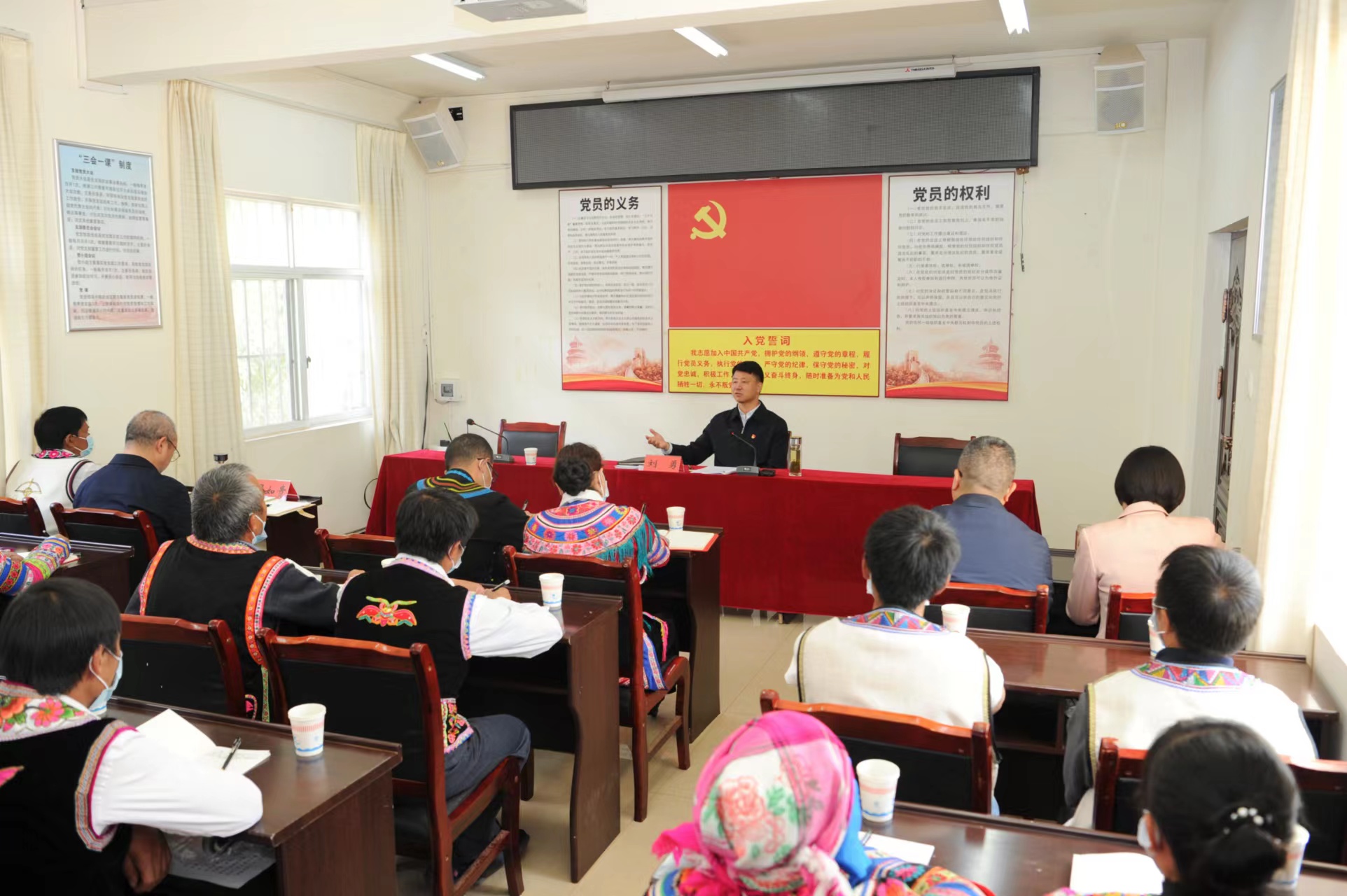州委书记刘勇在武定县插甸镇老木坝村委会调研基层党建并讲授专题党课。(楚雄日报全媒体记者 高建波 摄)