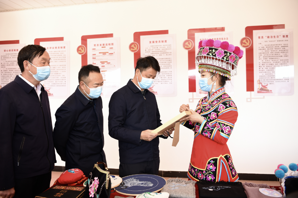 州委书记刘勇看望第十四届全国人大代表、牟定县杰鲁彝绣文化传播有限公司总经理金瑞瑞
