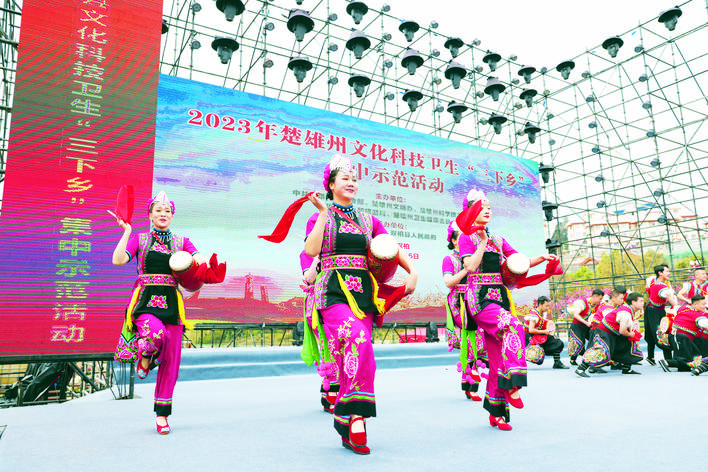 3月16日,由州委宣传部、州文明办、州科技局、州文化和旅游局、州卫健委主办,双柏县承办的2023年楚雄州文化科技卫生“三下乡”集中示范活动在双柏县查姆文化广场举行。