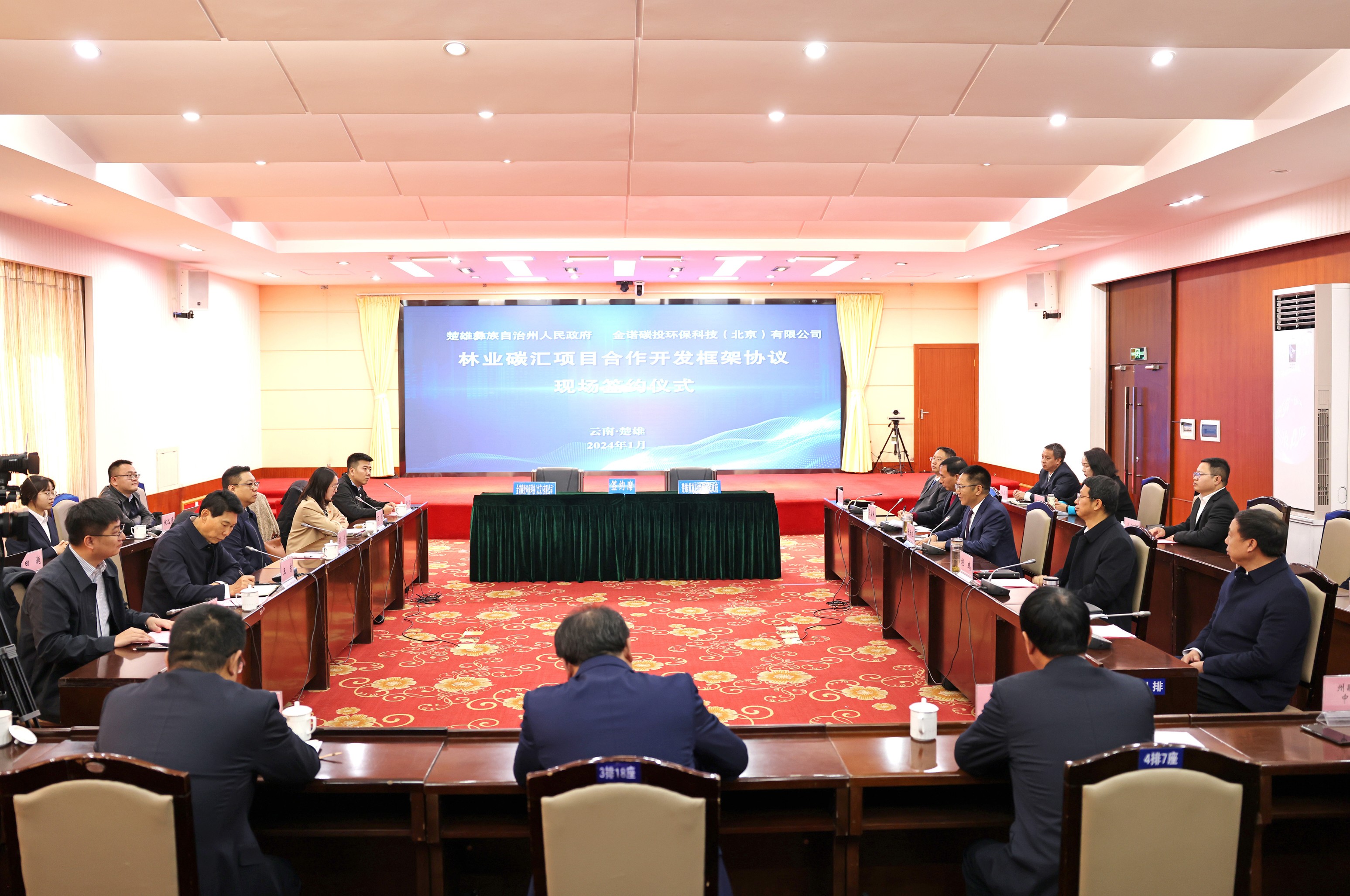 1月16日上午,州人民政府与金诺碳投环保科技(北京)有限公司举行林业碳汇项目合作开发框架协议签约仪式,州委副书记、州长张文旺,金诺碳投环保科技(北京)有限公司总经理孙琦出席并共同见证签约。