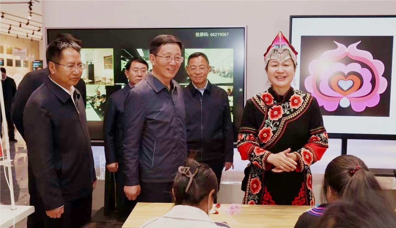 王予波在彝绣产品交易中心调研