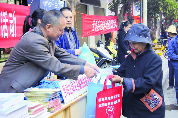 他还与各地文艺宣传队合作编写含有法治宣传内容的花灯、彝族左脚舞歌曲,还拍摄法治宣传教育专题片《热坝说法》,设立元谋县法治文化中心,创办普法微信公众号……法律正以愈加通俗易懂的面孔,出现在群众面前。