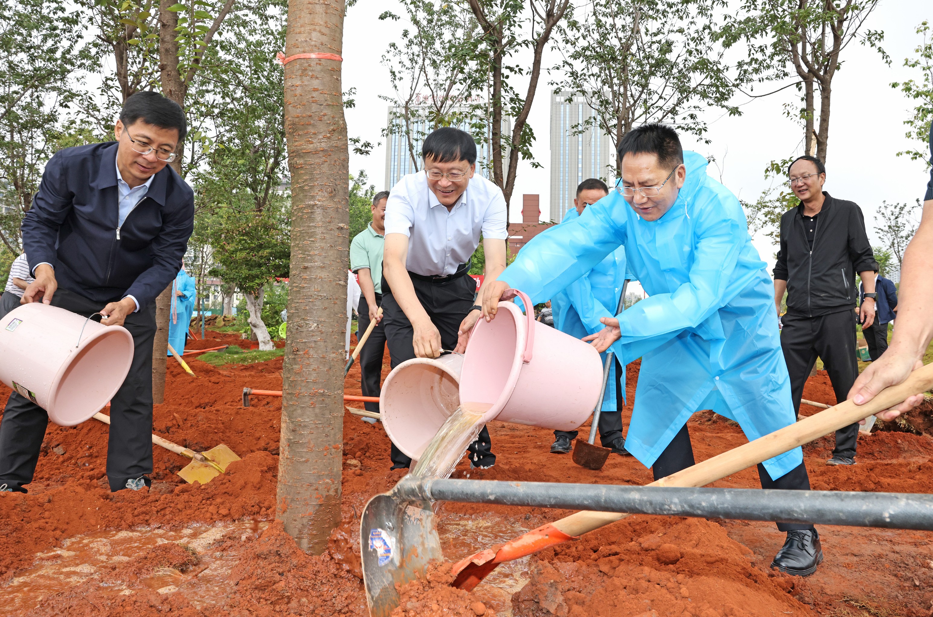 州委副书记、州长张文旺等领导在楚雄州2024年州级单位“互联网+全民义务植树”活动现场植树浇水