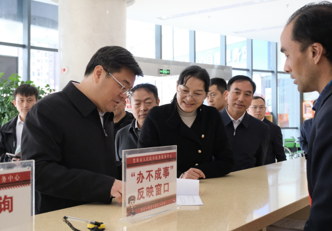 随后,张子建以“四不两直”方式到楚雄市政务服务中心督导检查窗口服务工作。在24小时自助服务区,张子建实地察看群众自助办理业务情况,来到帮办代办和“办不成事”窗口,详细询问接待群众帮办代办情况,前往食品经营许可证办理窗口、水电气联动办理窗口、工程建设项目审批窗口和烟草专卖政务服务办理窗口,仔细询问办证流程、审批时限和群众满意率等情况。张子建充分肯定窗口工作人员的办事效率和精神面貌,叮嘱相关部门及人员要规范审批流程,持续提升政务服务便捷化、智能化水平,切实帮助企业和群众办实事、解难题。