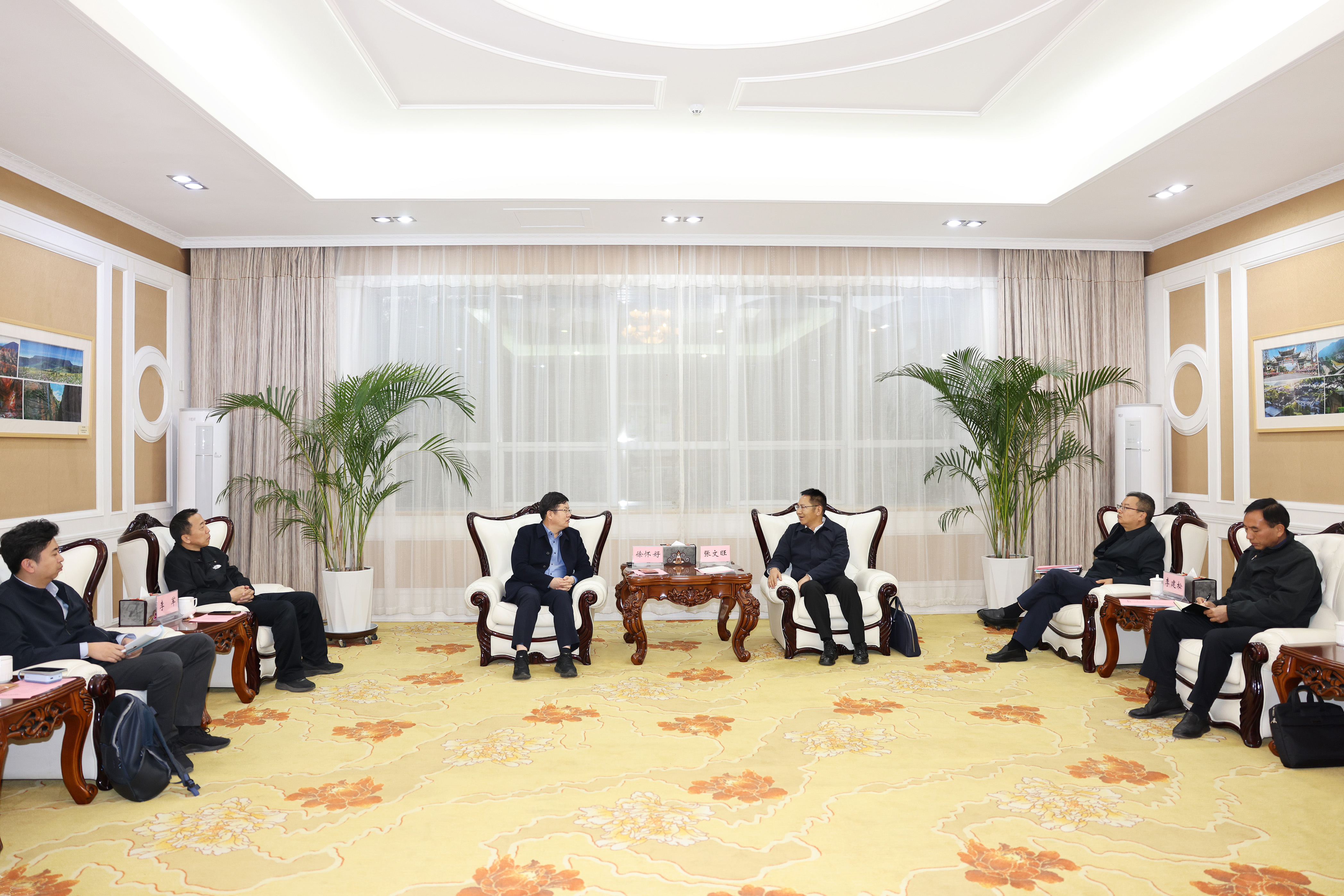 州委副书记、州长张文旺与中国老年报社总编辑徐怀好一行会见座谈。记者 夏天彧 摄