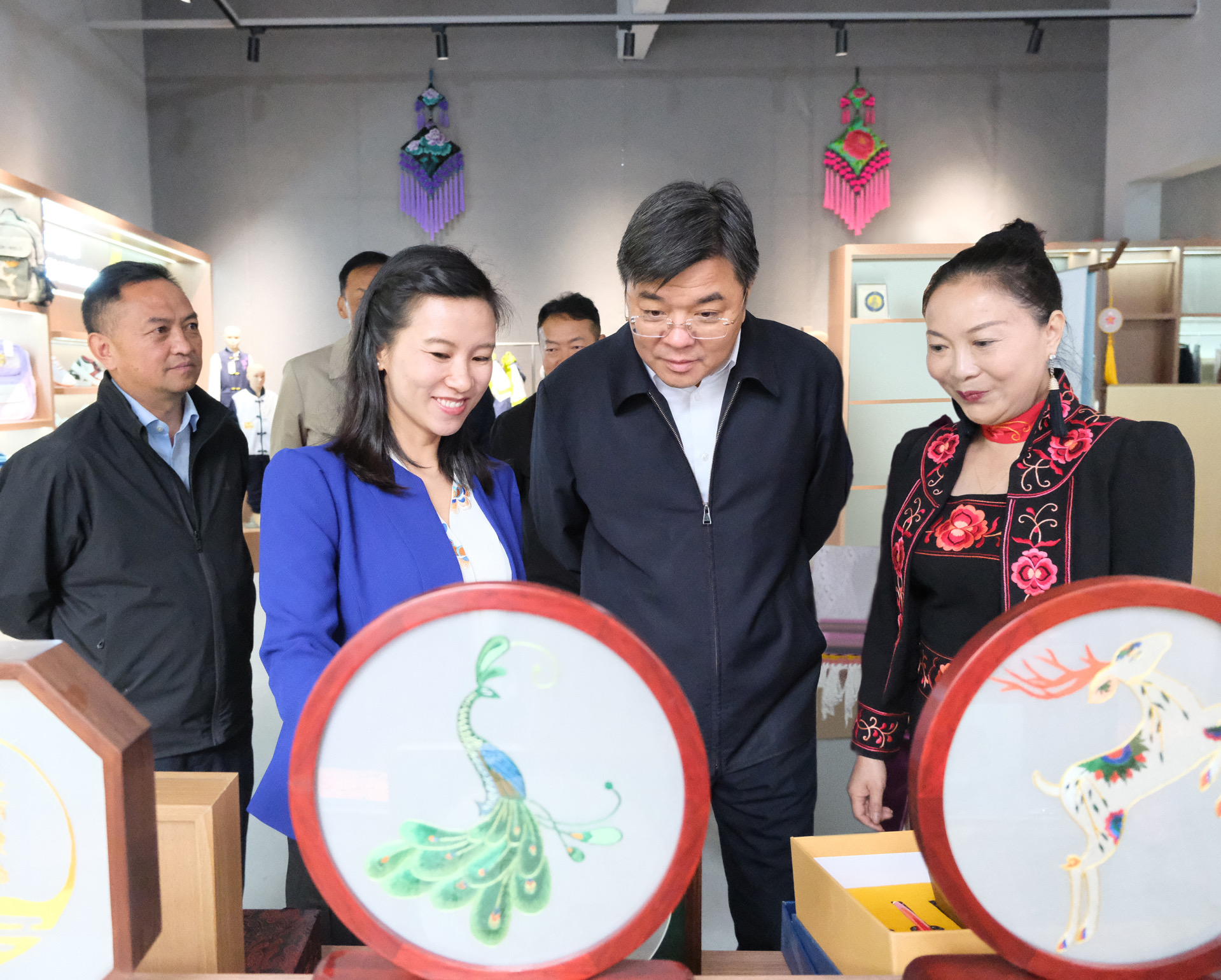 张子建在楚雄市万家坝记忆楚雄彝绣产业园区调研。