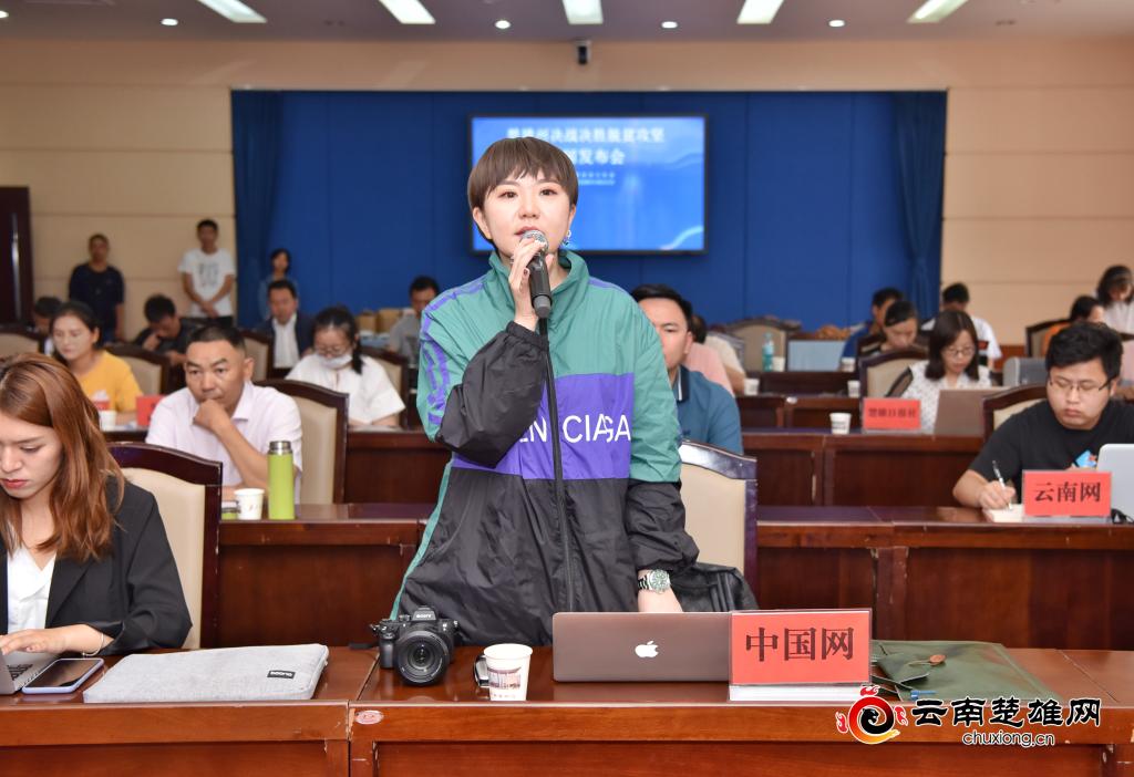 中新社、中国网、云南日报等中央驻滇、省级及州级新闻媒体的记者参加新闻发布会,并就楚雄市脱贫攻坚工作进行提问。