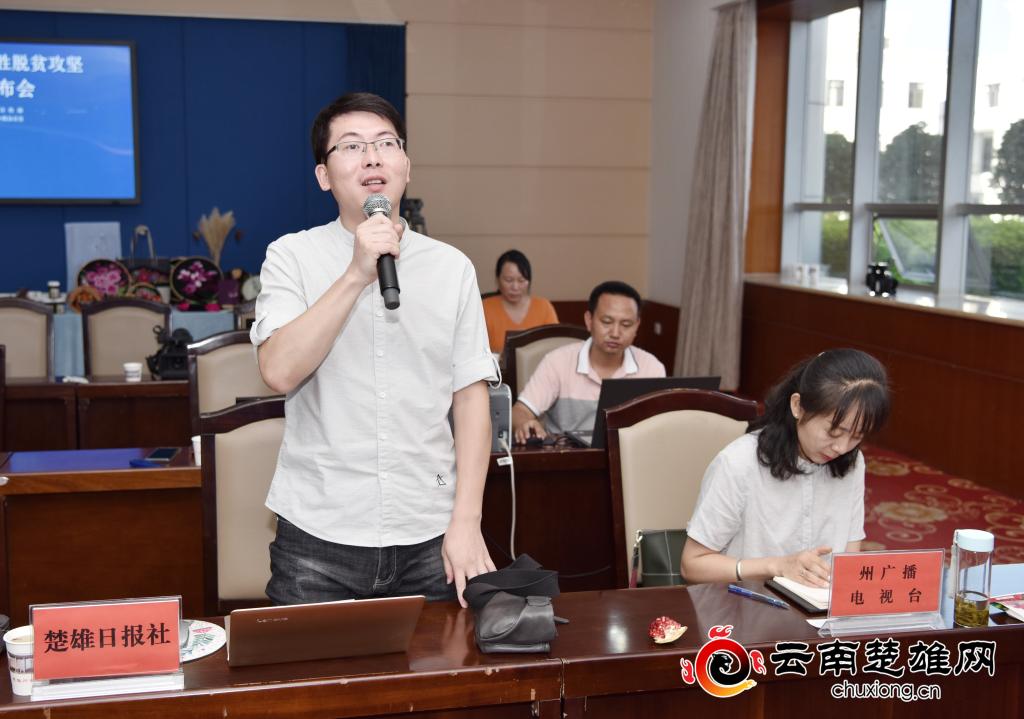 中新社、中国网、云南日报等中央驻滇、省级及州级新闻媒体参加发布会,并就脱贫攻坚相关问题进行提问。
