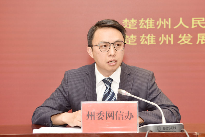 中共楚雄州委宣传部二级调研员孟孚主持新闻发布会。记者 王 洪 摄