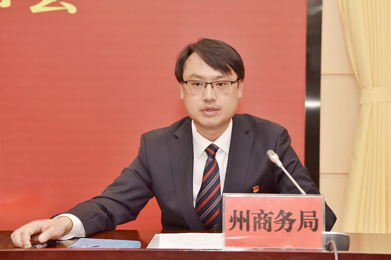 州商务局副局长唐荣星答记者问。记者 王洪 摄