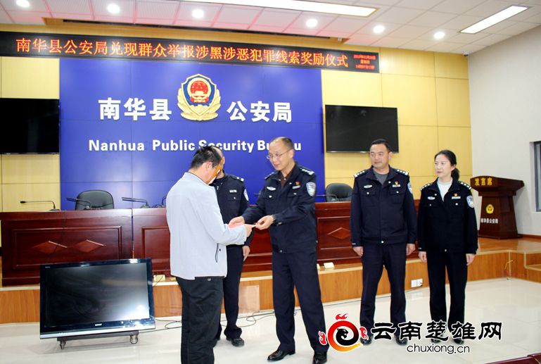 3月28日下午,南华县公安局举行涉黑涉恶线索举报奖励发放仪式,对专项斗争工作开展以来向南华县公安局举报涉黑涉恶违法犯罪线索,并经办案部门查证核实,符合奖励规定的3名线索举报群众进行集中奖励,共奖励人民币1.5万元。李娅娟 夏秀兰
