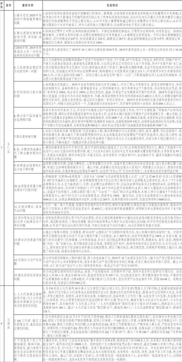 全州“不忘初心、牢记使命”主题教育开展以来,我州各级各部门认真贯彻落实习近平总书记关于“注重开门抓教育”“注重解决群众最急最忧最盼的紧迫问题”的重要指示,深入推进“问题起底、党员服务、群众满意”工作,聚焦突出问题抓好整改落实,着力解决群众最急最忧最盼的紧迫问题取得了明显成效。为确保主题教育取得最好成效,让群众切实感受到主题教育带来的新变化新成效,实现“为民服务解难题”的目标,现将第四批(县市)立行立改事项整改落实情况予以公布,接受群众监督。