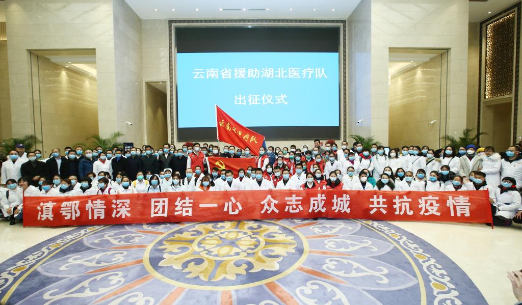 当天,云南省第一批援助湖北医疗队出征仪式在昆明长水机场举行。来自全省6家医院的137名医护人员整装待发,他们将从昆明赶赴湖北武汉,参与新型冠状病毒感染的肺炎疫情防控和救治工作。