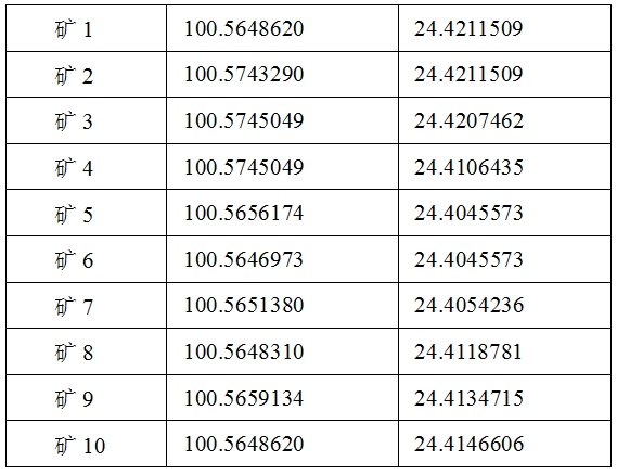 勘查范围:面积3.5958平方千米,拐点坐标如下(2000国家大地坐标):