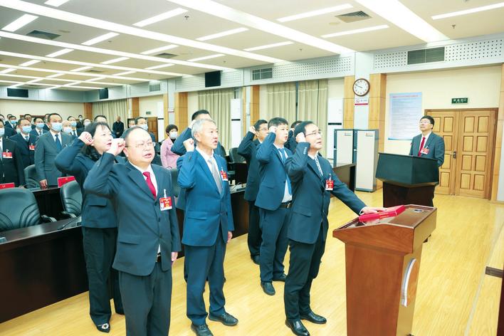 新当选的州十三届人大常委会委员向宪法宣誓。