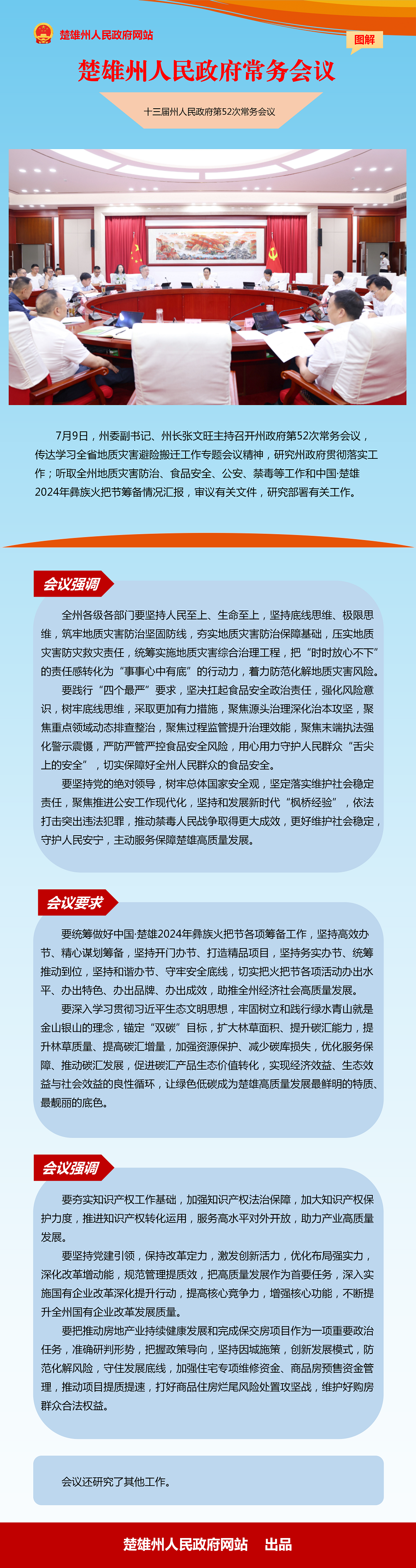 | 索引号:115323000151673132-/2024-0710003 | 公开目录:州政府常务会议图解 | 发布机构:楚雄州人民政府办公室 |