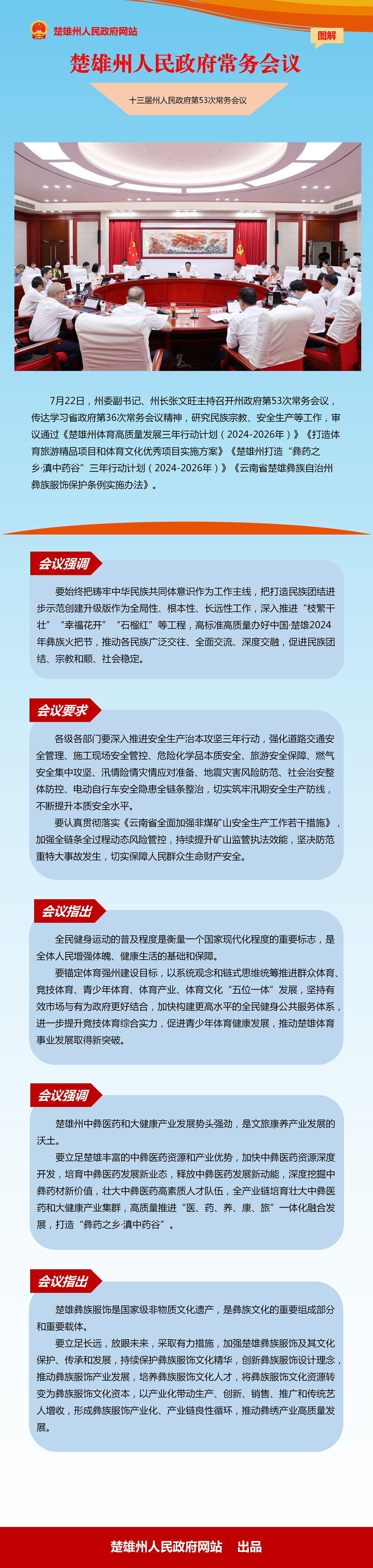 | 索引号:115323000151673132-/2024-0723002 | 公开目录:州政府常务会议图解 | 发布机构:楚雄州人民政府办公室 |
