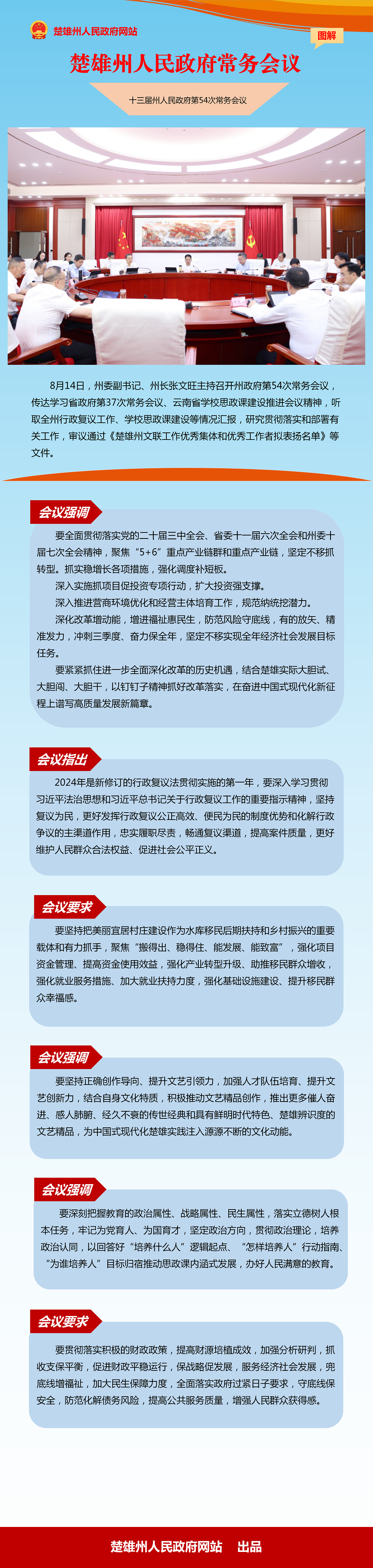 | 索引号:115323000151673132-/2024-0815002 | 公开目录:州政府常务会议图解 | 发布机构:楚雄州人民政府办公室 |