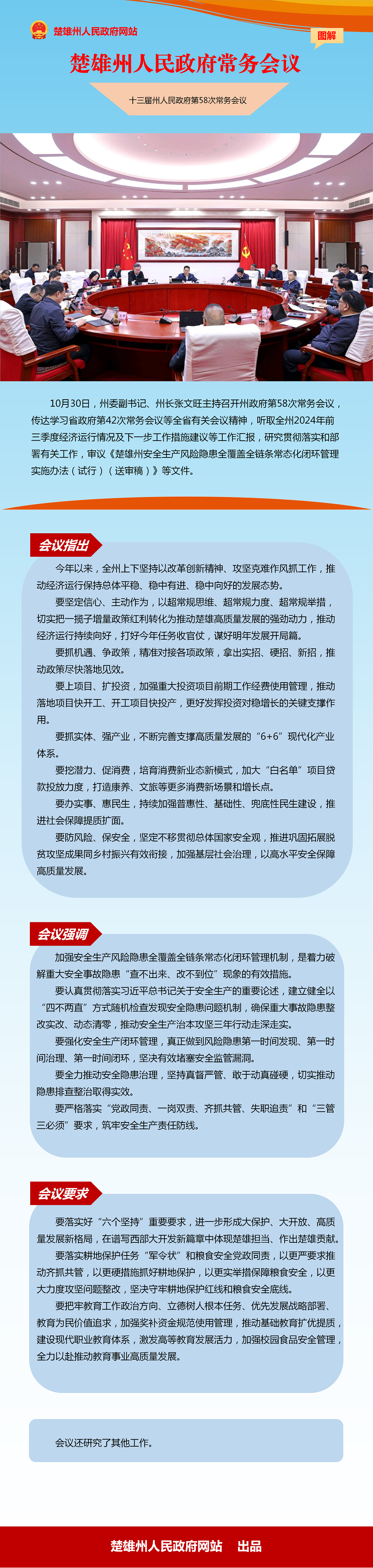 | 索引号:115323000151673132-/2024-1031002 | 公开目录:州政府常务会议图解 | 发布机构:楚雄州人民政府办公室 |